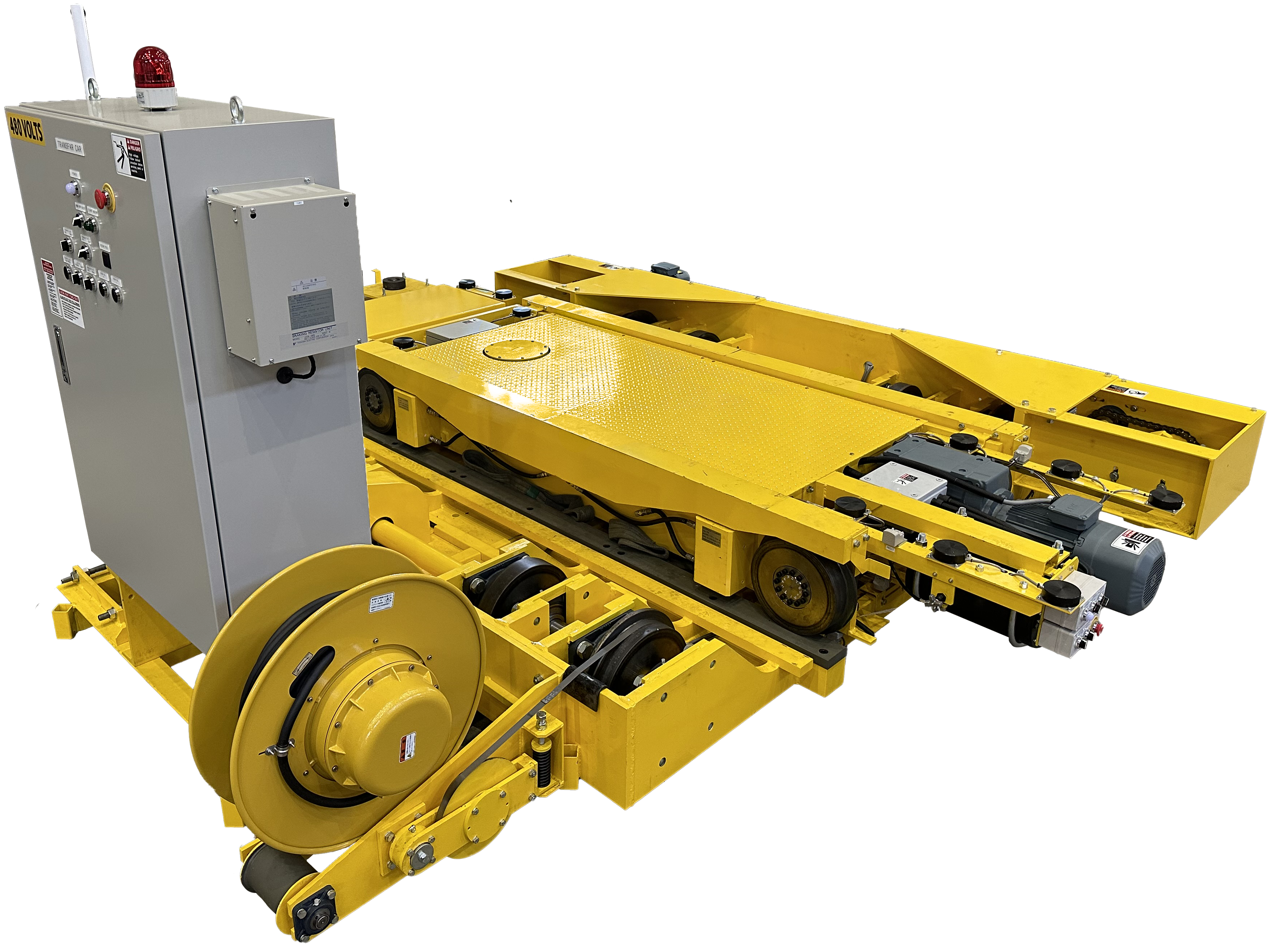 特徴:クローラー(ラックを運ぶ小型の搬送装置)が双方向に走行できます。